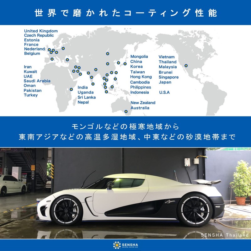 There are various environments in different countries, and some areas with extreme cold regions such as Inner Mongolia and Tibet, high temperature and humidity throughout the year, such as Thailand and and Malaysia, where sand and dust are exquisite. Since your vehicle is always outside, damage from the natural environment is directly suspended. It is extremely difficult to achieve the coating effect even in a variety of environments around the world. Crystal Grow is a world-class coating agent used under such severe conditions. We conduct tests by the public institutions (Kanagawa Prefecture Industrial Technology Center) and monitor tests in cooperation with our customers.
