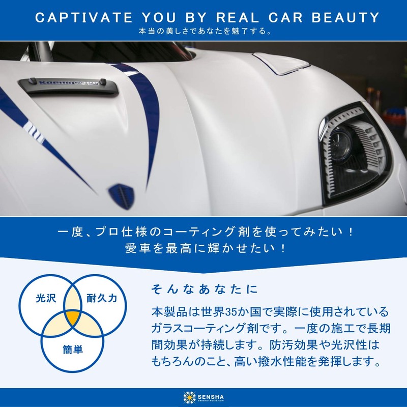 This product is a professional glass coating agent used in nearly 800 coatings shops in 35 countries worldwide. The best feature is that one application lasts for a long time. We use a coating component known as the pinnacle of the durable coating agent used in the PRO shop. It forms an inorganic glass film, so it is not only stain resistant and glossy, but also has high water repellency. There are many coatings known as high hardness coatings, but this Crystal Grow is definitely one of the best coatings in these coats.