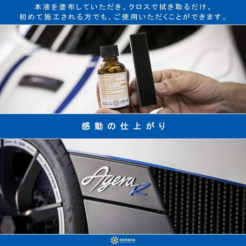 洗車の王国 撥水 ガラスコーティング剤 30ml クリスタルグロウ 3年 耐久型 (スポンジ 極細繊維 クロス付き) 989