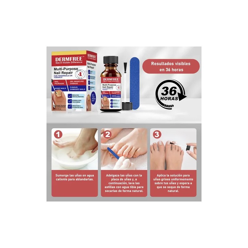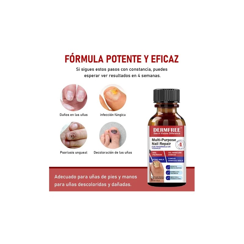 Beneficios Clave de Dermfree Uñas Hongo Liquido Reparación De Uñas (30ml)