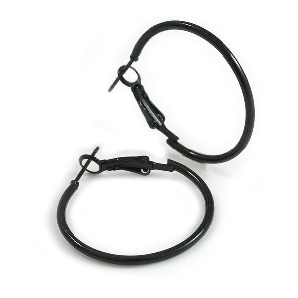 30mm D/Black Enamel Slim Hoop Earrings/Small