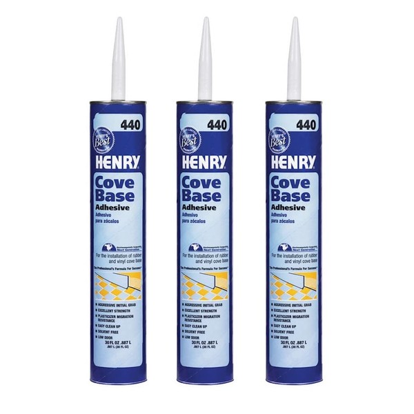 - Henry 440 30 oz. cover base adhesive is perfect for installing rubber and vinyl cove base.