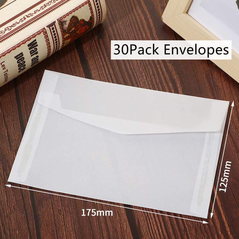 • Package & Size - You will get 30Pcs x Glassine envelopes(Not included card), the translucent vellum paper envelopes measures about 6.9x 4.9''/17.5x12.5cm, perfect size fits for your stamps, bookmarks, photos, letters, etc.