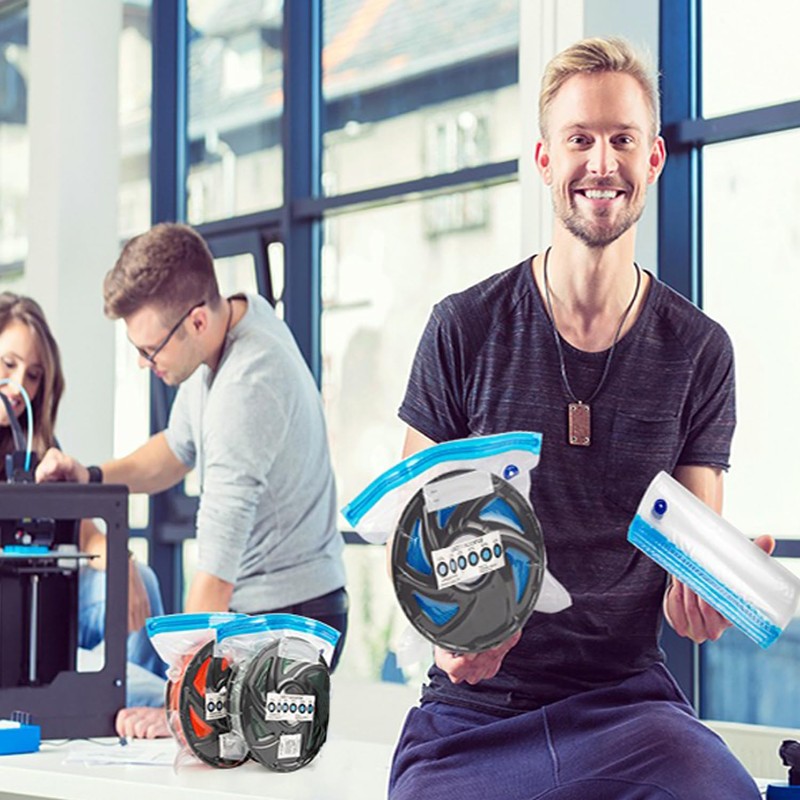 - Ideal Storage Solution for Open Filaments: Featuring a double-seal zipper and air valve design that is both moisture-proof and dust-proof to maintain the quality of consumables. The microporous structure of the vacuum bags incorporates embossed air-removal channels to ensure strong suction and effective sealing for creating a vacuum-dry environment for your filament spools.