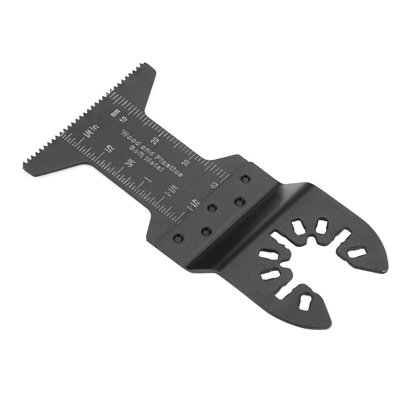 1、Made of high carbon steel, wear resistant and durable for long term use. 2、Sharp and tidy saw teeth cut quickly and not easy to break. 3、Digital scales on the surface help achieve accurate cutting depth. 4、Ideal tool for cutting wood, plastic, soft metal, etc. 5、Universal saw blade for most brands of electric oscillating tools.