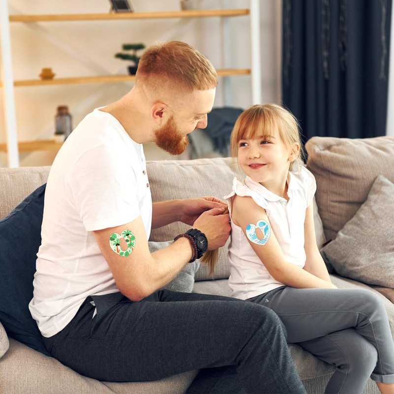 • Fun & Functional Design: These CGM overlay patches come in a heart shape with bright and charming summer patterns. Designed with a center cut-out to securely frame your sensor, they offer a playful yet practical way to protect your device during daily activities.