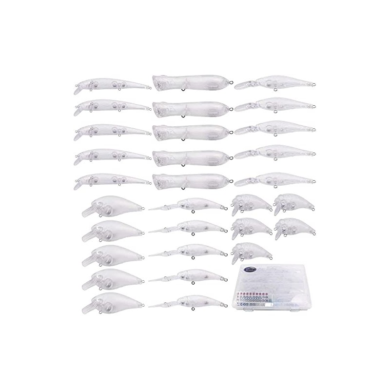 30pcs Blank Crankbaits Unpainted Fishing Lure with Tackle Box