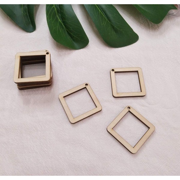 30PCS DIY Unfinished Wood Squared Diamond Hoop Earring Findings,Wood Findings for Earring Making,Diamond Earring Hoops for Macrame (2")