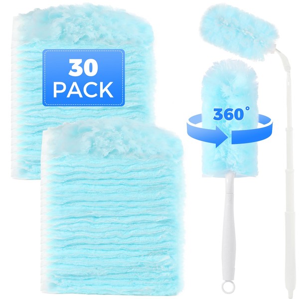 30PCS Duster Refills Compatible with Flash, 360° Fluffy Dust Magnet Refill with Extended Handle, Disposable Microfiber Duster Refills for Cleaning