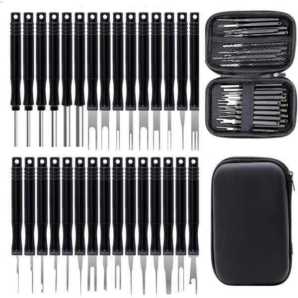 - 【Package includes】: 30 pieces of automotive cable connector disassembly tools, pin pullers, maintenance and disassembly tools. Most connector terminals are key tools with protective sleeves, and a sufficient quantity can meet your usage needs.
