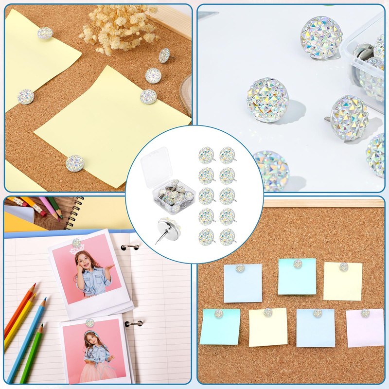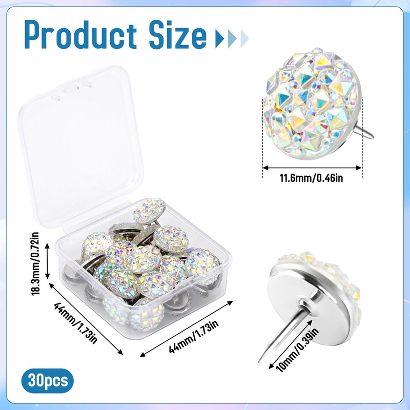 - 【Package Content】you will receive 30pcs decorative push pins,packed in a transparent plastic box for easy storage,proper size and glitter outlook accord with most people's preference.