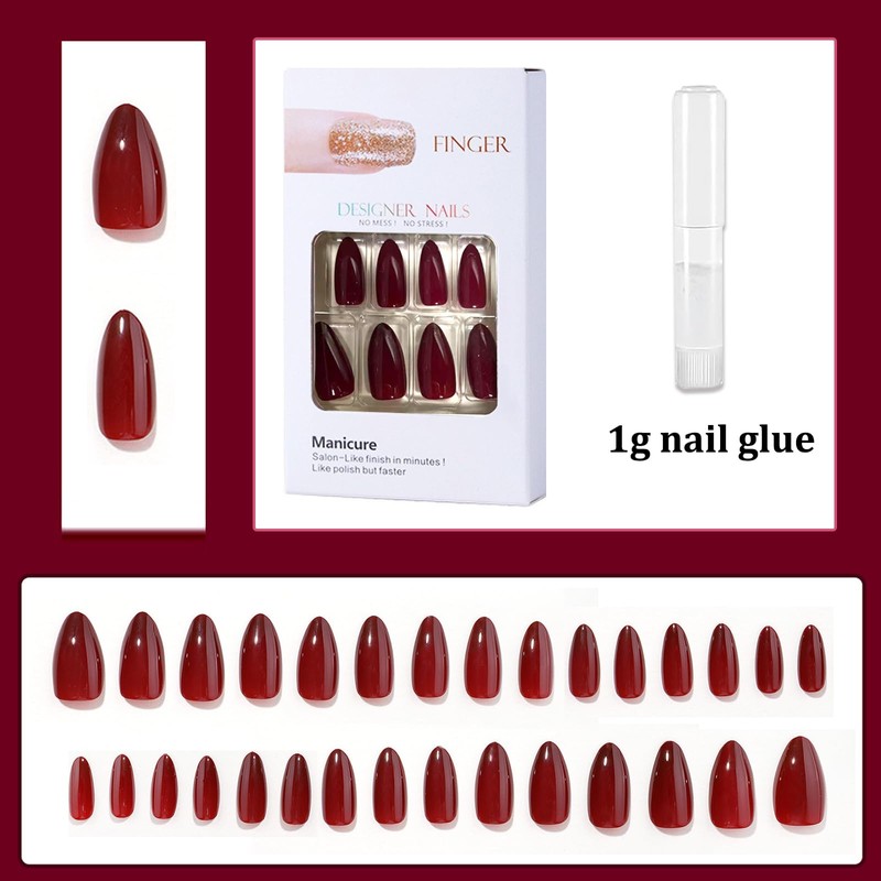 - 【Long Lasting for 15+ Days】:Fake nails with glue is very sturdy, waterproof and not easy to peel off, it can make the wine red false nails last 1-3 weeks (Note: Only use a little bit of glue on nails each time, don't overflow and stick to your skin)