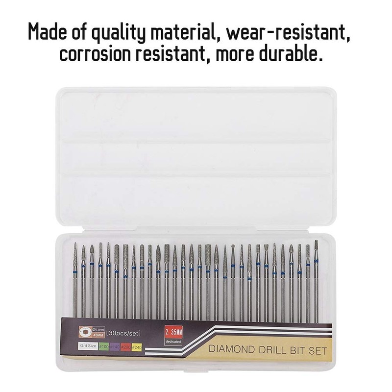 30Pcs / Set Juego de fresas con cabezal de rectificado de diamante: kit de tallado y grabado, kit de cabezal de esmalte para taladro de uñas, accesorios para máquina de taladro de uñas para (B)