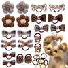 30Pcs Small Dog Hair Bows with Rubber Bands Handmade Girls Female Puppy Dog Bows That Stay in Cute Pet Grooming Flower Ball Bowknot Medium Dog Hair Ties Accessories Bulk for Yorkie Maltese (Brown)