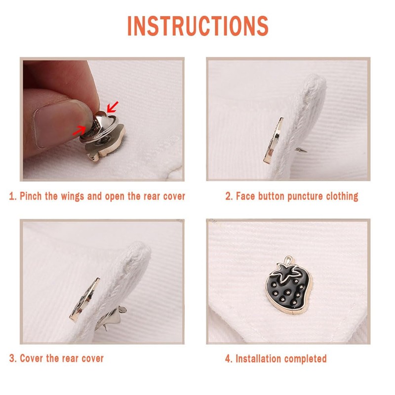 The metal pin back is tight and they are not easy to fall off; Each pin back has a hole which is compatible with the tie tack pin.The brooches pins can also be applied in clothes, bags,hats,even party cake decorate, wedding brooch bouquet or DIY craft projects.