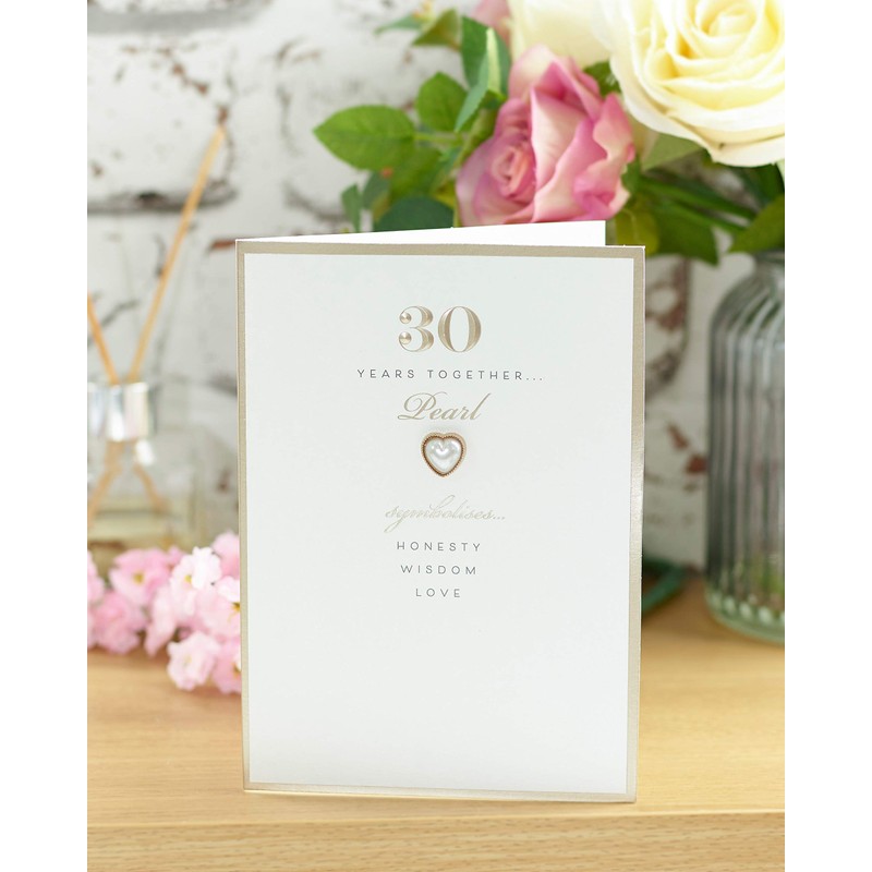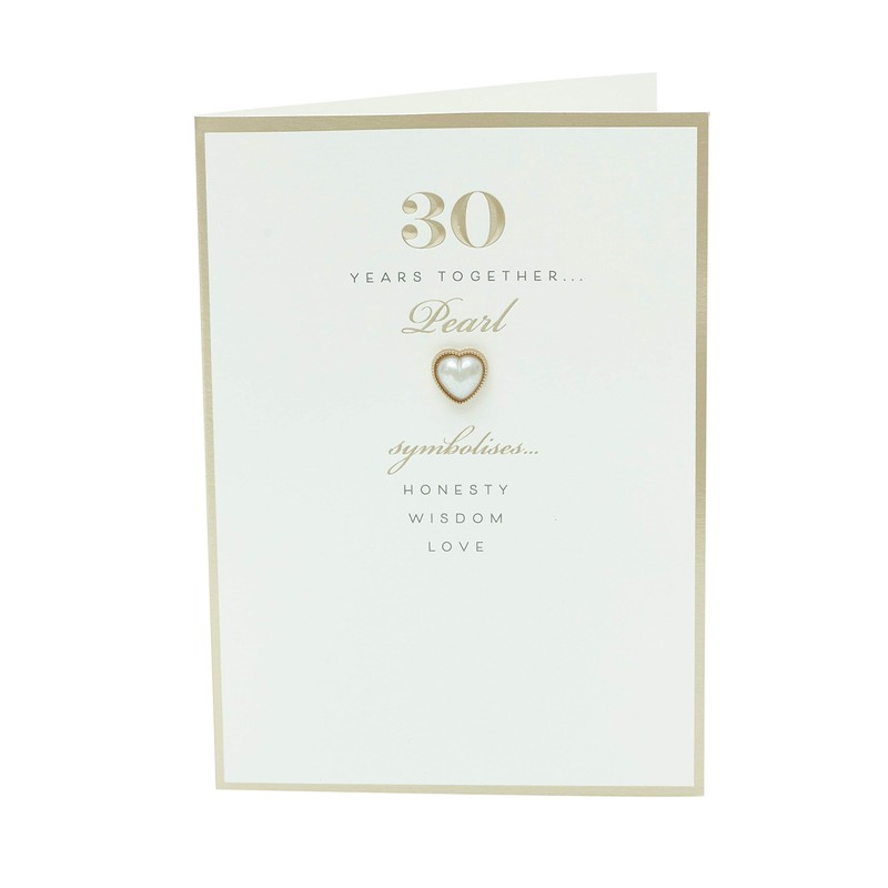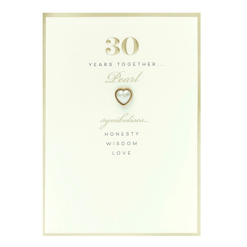 - Pearl symbolises 30 years of marriage – what better way to celebrate the milestone anniversary than with this special 30th wedding anniversary card, featuring a pearl heart.