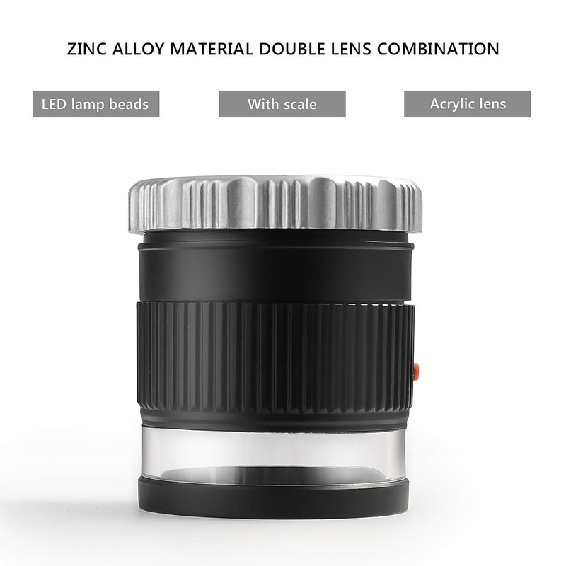 - 【ABS Plastic Material】 - Made of high quality ABS plastic material with black paint finish.It's quite durable and not easy to damage. This 30x magnifier has a len of 1.1 in diameter,and 3 white light 3 purple UV light.This little magnifier will be a good helper at work
