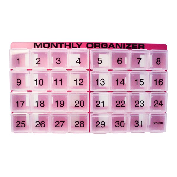 - FULL MONTH ORGANIZER - 31 compartments plus an extra storage compartment allows you to organize your pills for an entire month.