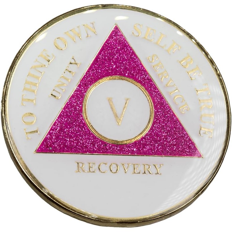 31 Year AA AA Medallion Medallion Pink Glitter White Glow Tri-Plate Sobriety Chip