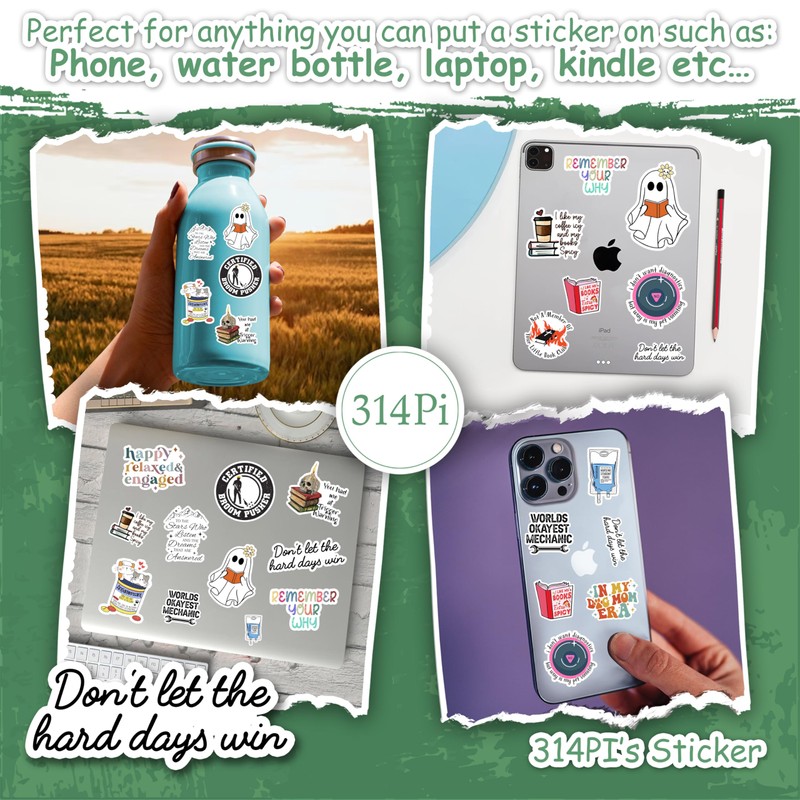 - RICH USAGE SCENARIOS: Our stickers are versatile and can be used on laptops, skateboards, luggage, cars, bumpers, bikes, bicycles, bedrooms, travel cases, bicycles, motorcycles, snowboards, and more. The versatility and durability of 314PI's stickers make them a popular choice for personalizing and customizing various items and surfaces.