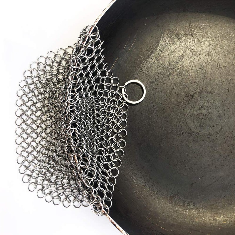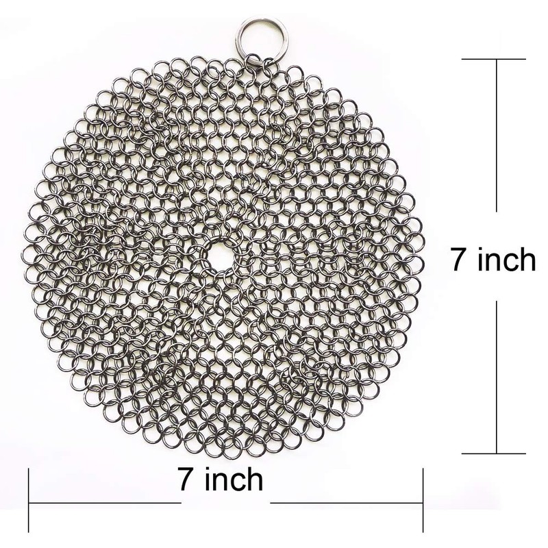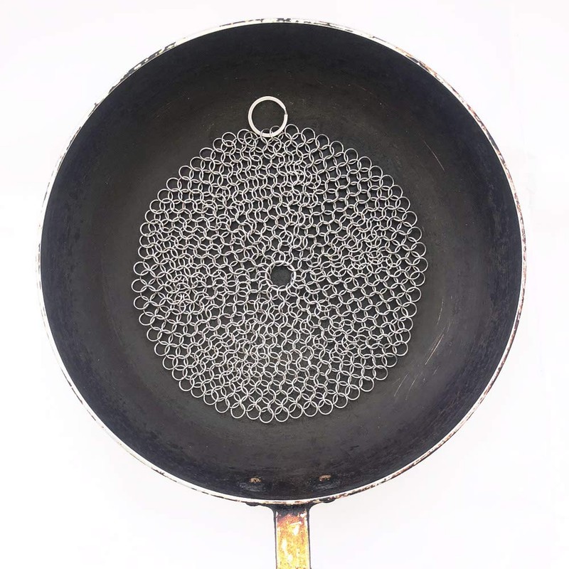 - DURABLE & HYGIENIC - Cast iron cleaner is made of restaurant quality 316 grade stainless steel, which is food-safe and ultra-hygienic, unlike conventional germ-infested scrubbers. Chainmail scrubber combines smooth enough and handcrafted and lasts for at least 1 year.