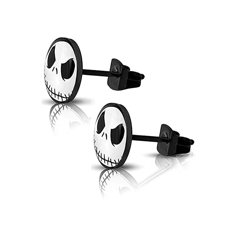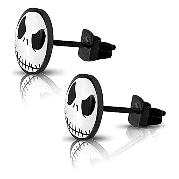 316L Surgical Stainless Steel Jack Skellington Round Circle Button Stud Post Earrings(10 mm) ER67 (Black)