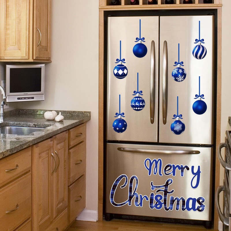 31PCS Christmas Garage Door Decorations Magnets - Merry Xmas Ball Holiday Refrigerator Fridge Kitchen Decor(Blue)