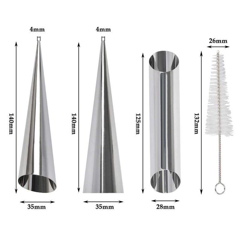 - [ Ideal for Baking ] -- Cone cake mold kit is a good DIY tool to fill with your favorite recipe. Great for making filled desserts or appetizers and baking cone-shaped pastry shell, like cream horn, French horn, popsicle, small ice cream cone, flaky pastry, pizza cones, waffle cone and shaping pizelle, etc.