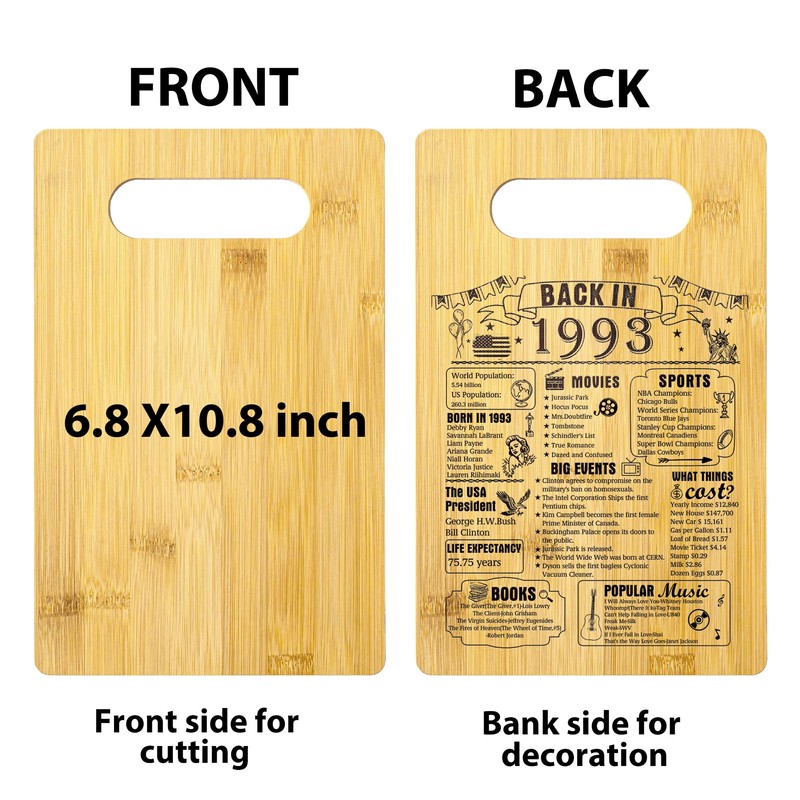 - 31th Birthday Gift: If you're looking for a gift for friends and family who will be celebrating their 31th birthday, this cutting board dating back to 1993 has fun facts and important highlights from that year, making it the best 30th birthday gift for your mother's father or grandparents.