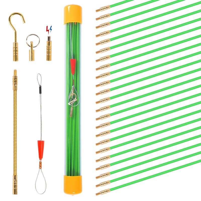 - ✔️ [ Quality Material ] The 32.5FT fiberglass fish rod kit is made of fiberglass material with a low-friction design that allows the tape to slide easily through the conduit without kinking at turns, joints or couplings. And the bright green color helps u locate and differentiate the rods from wires easily.