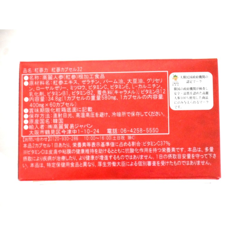 【高麗貿易ジャパン】紅参カプセル 紅参力32 60粒(こうじんりょく)