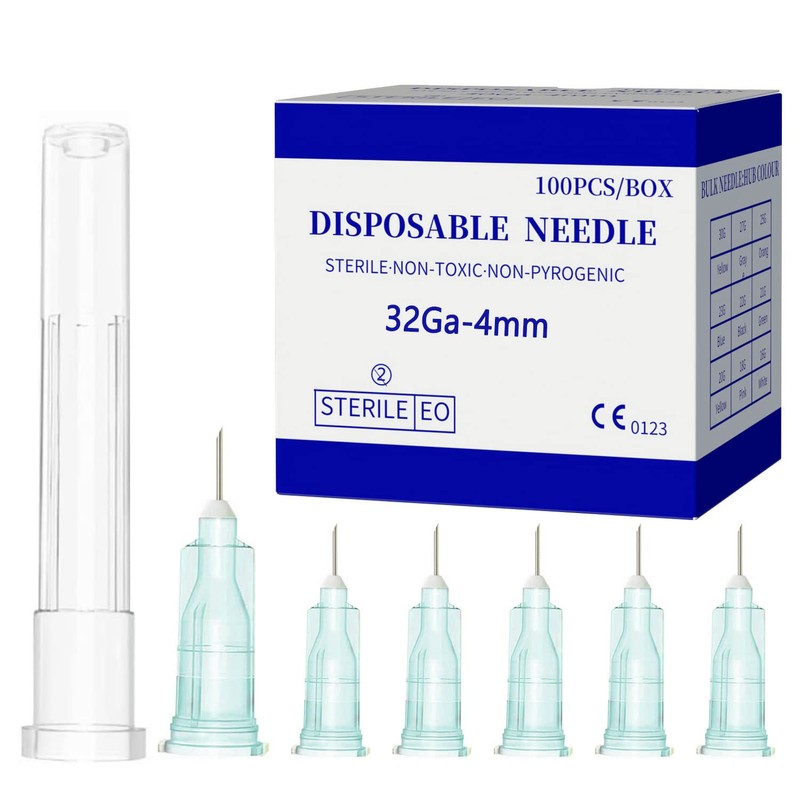 32 Gauge 4mm Luer Lock Lab Needle,Pack of 100(32Ga-4mm)