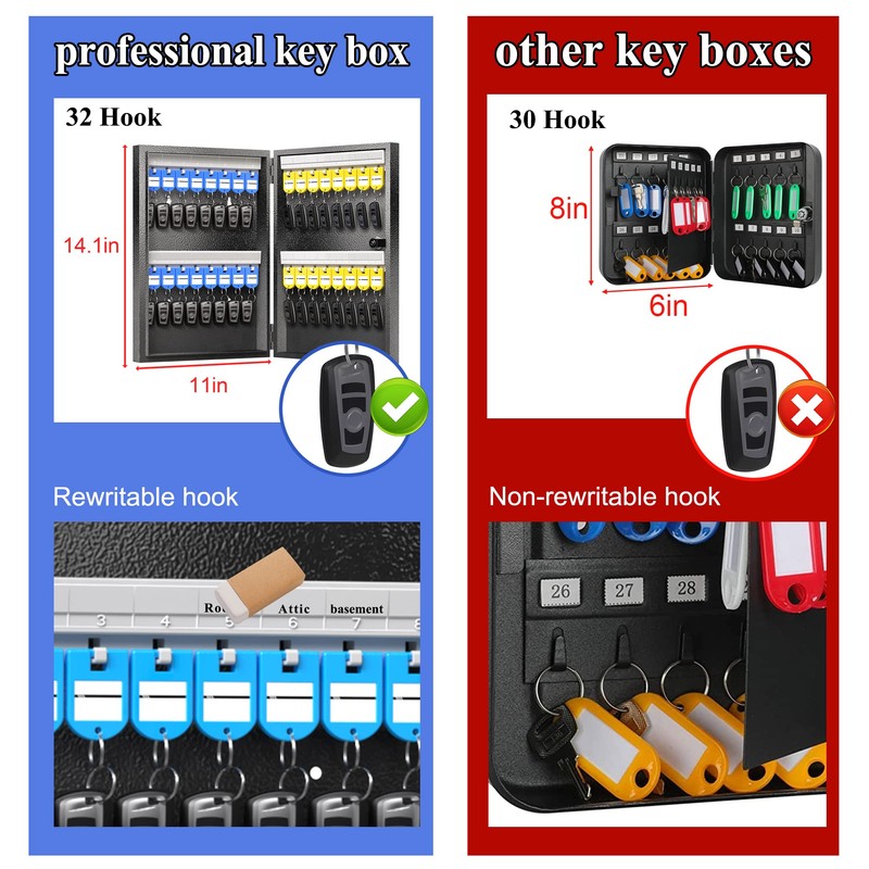 DiDiHere 32 Key Cabinet Organizer, Lock Box, Security Storage for Valets, Hotels, Car and House Keys, Key Keeper Box - Black