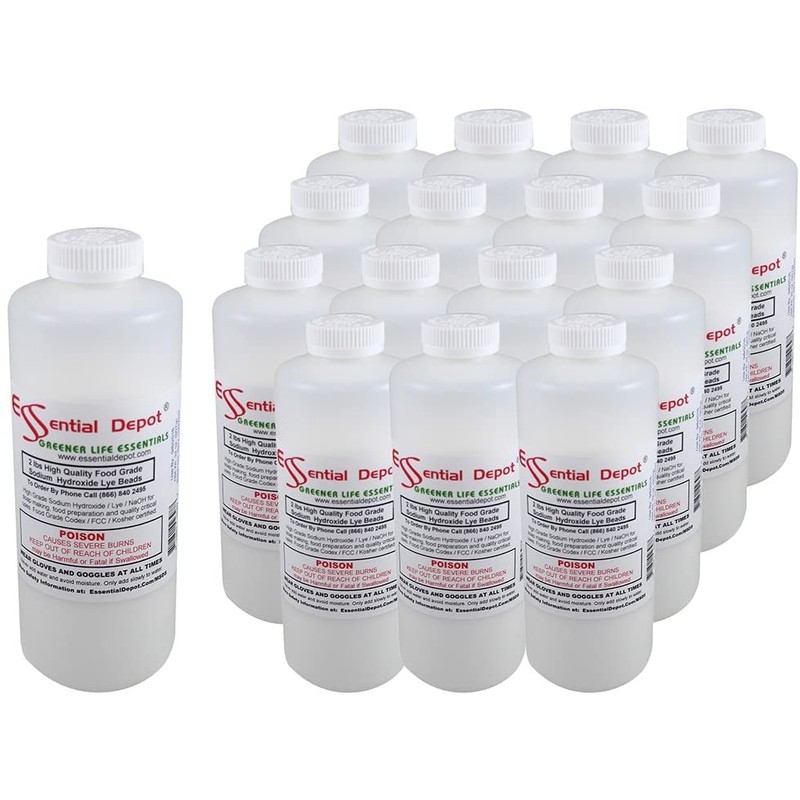 32 lbs Food Grade Sodium Hydroxide Lye Evenly-Sized Micro Pels (Beads or Particles) - 16 x 2lb Bottles - Lye Drain Cleaner - HDPE container with resealable Child Resistant cap