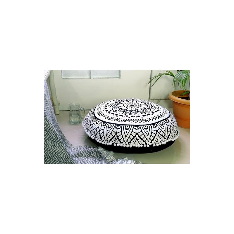 32" Mandala Large Floor Pillow Cover Meditation Cushion Seating Throw Hippie Round Colourful Decorative Bohemian Boho Chic dog bed Indian Pouf Ottoman Handmade COVER ONLY (Flower Ombre- B/W)