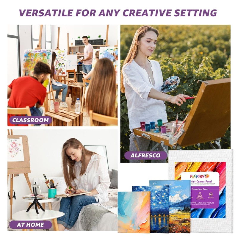 PUOPOSTY 32-Pack Canvas Boards for Painting – 4 Each of 11x14, 8x10, 5x7, 6x8, 6x6, 4x4, and 8 of 4x6 – 100% Cotton Primed Art Supplies for Kids & Adults – Ideal for Acrylic & Oil