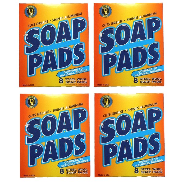 32 Pack Dura Blu Steel Wool Soap Pads 4 Boxes of 8