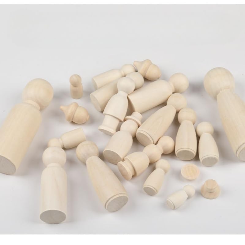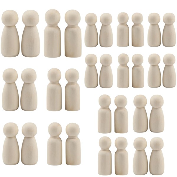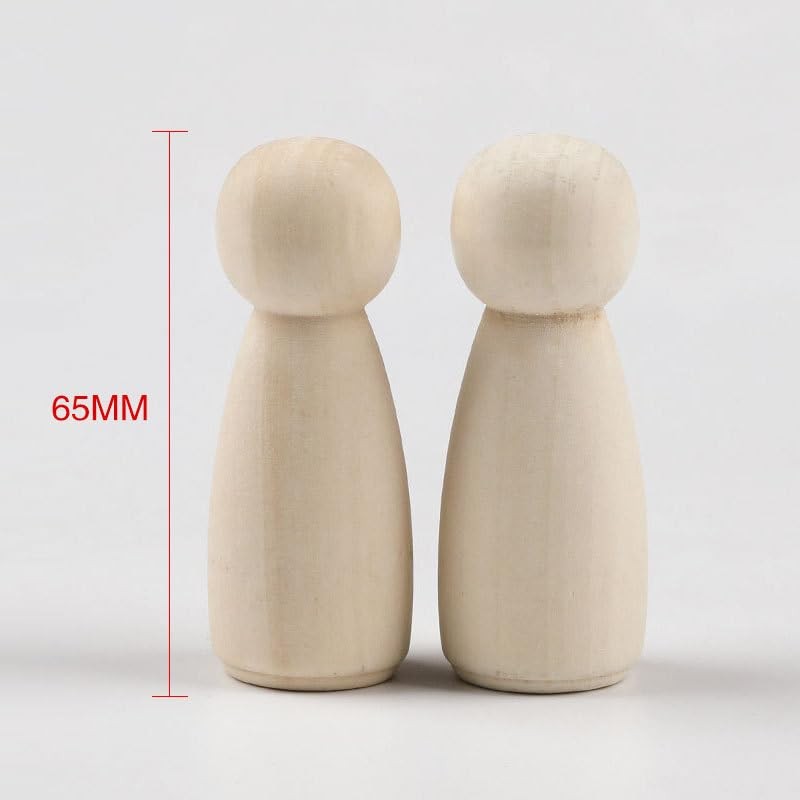 - Wooden Peg Dolls set includes 32 unfinished wooden people, 4x65mm, 8x53mm, 8x43mm, 12x33mm.
