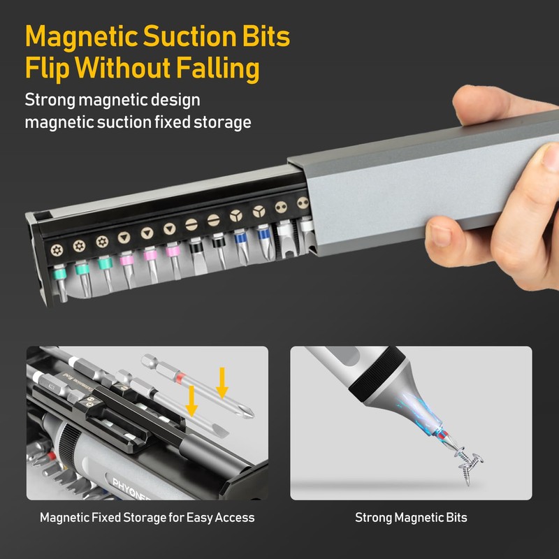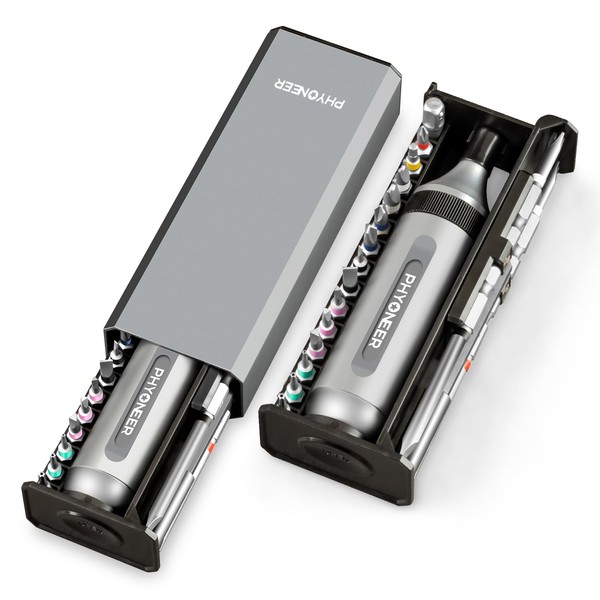32 pcs Ratcheting Screwdriver Set - PHYONEER Multibit Screwdriver Portable for Travel, Multi-Function Milwaukee Impact Magnetic Storage Screwdriver Tool Kit with Aluminum Handle