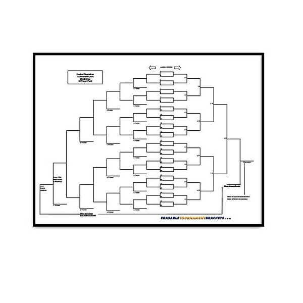 - ERASABLE TOURNAMENT CHART - 32 Player Blind Draw Double Elimination Erasable Tournament Bracket Chart with 1 Dry Erase Pen