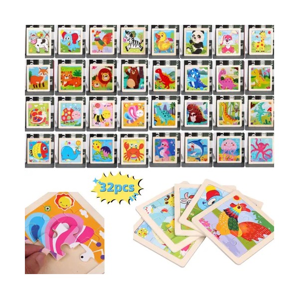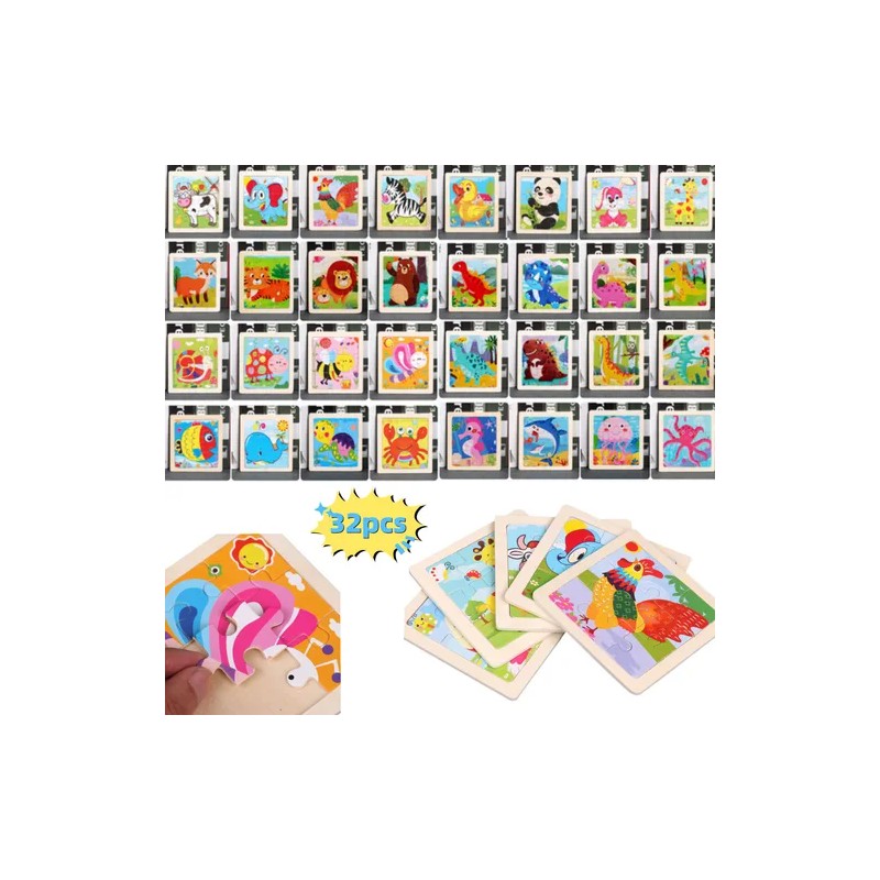 32 Rompecabezas Figuras Surtidas Para Niños Pequeños Madera
