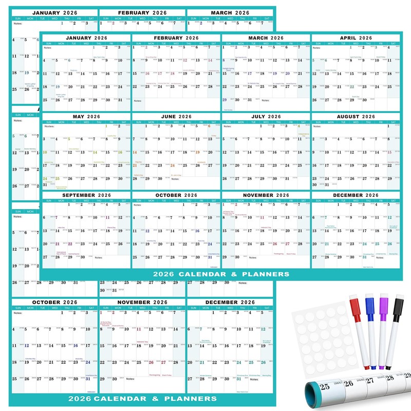 - 👍Large 2026 CALENDAR :Our 32" x 48" 2026 wall calendar 12 Month is from January 2026 to December 2026. It's perfect for keeping track of family activities, business meetings, or personal goals.