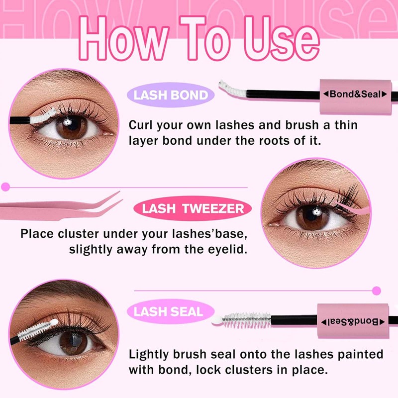 - 【High Quality】The individual lashes is Super Thin Band, Easy to Apply, and Stable Curl. Gentle formula bond and seal glue with excellent waterproof power and long-lasting hold, prolong the lash extension’s retention. 2 in 1 - made for your convenience, easy to apply without clumpy and easy to remove by lash clusters glue remvover, without residue.