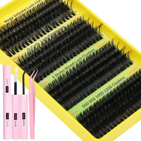 320Pcs Lash Clusters Kit 12-20MM D-Curly Long Cluster Eyelash Extensions Styles Mixed 60D+80D+100D+120D Mink Like Volume DIY Lash Extensions Kit by JIMIRE