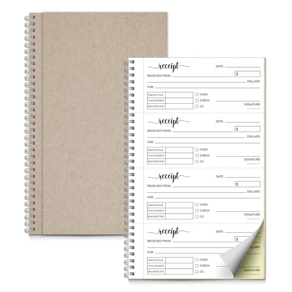 321Done Receipt Book, 11x6 2-Part Carbonless Spiral Bound, Made in USA, 4 Receipts per Page, 50 White/Yellow Pages, 200 Sets per Book, Receipt Book with Carbon Copies for Small Business