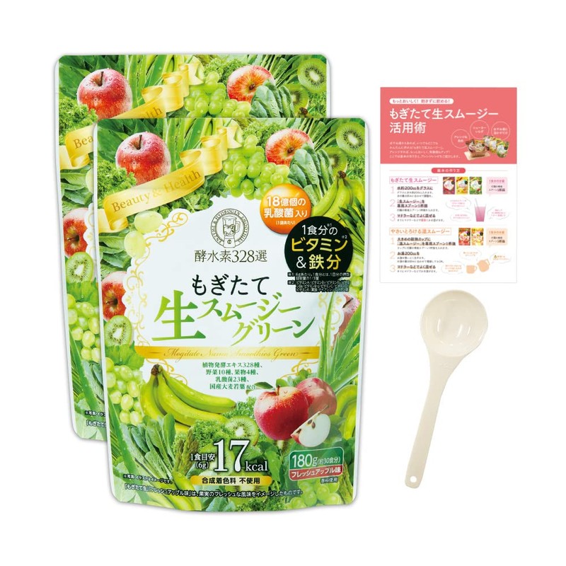 もぎたて生スムージーグリーン フレッシュアップル味 [ スムージー 置き換え ファスティング 食物繊維 乳酸菌 ビタミン 鉄分 コラーゲン オンライン限定サイズ ] 酵水素328選 180g/2袋