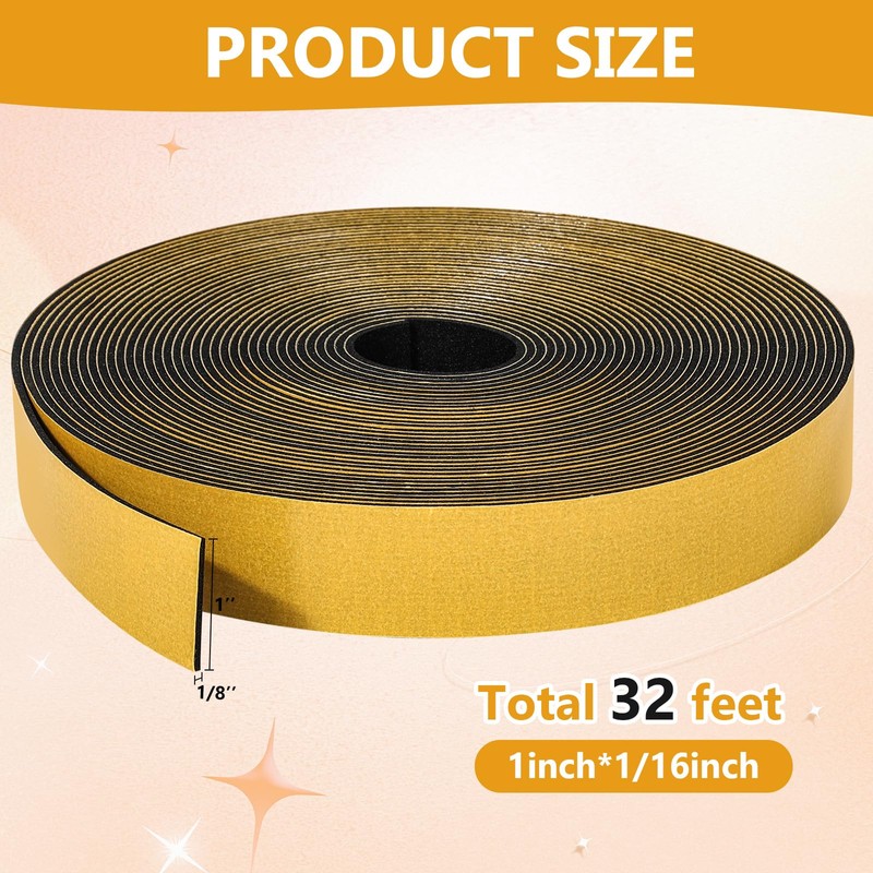 32Feet Weather Stripping Seal (1 Inch X 1/16 Inch) for Door Window, High Density Foam Tape, Soundproofing, Insulation Strip, Door Sealers for Door Frame- Black