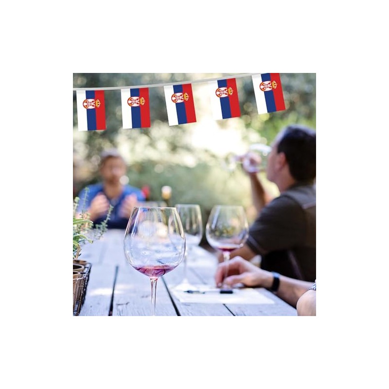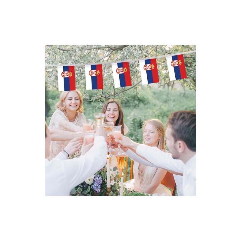 32FT Serbia Pennant Small Flag Bunting,30 PCS Serbian Mini String Banner Stripes Decor for Holiday Restaurant Home Party School