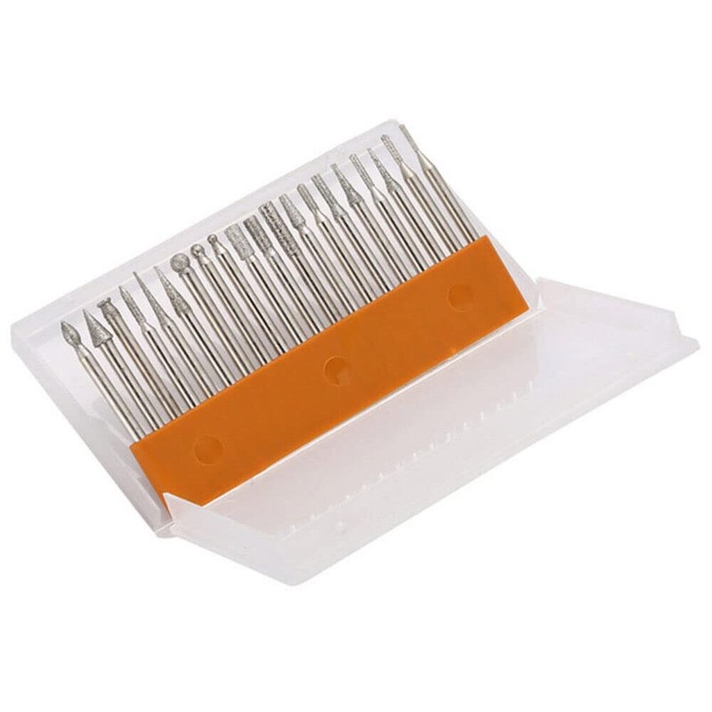 - 32 Piece Set - Includes 20 Diamond Burr Bits, 10 Diamond Cuttings Wheels, And 2 Mandrel