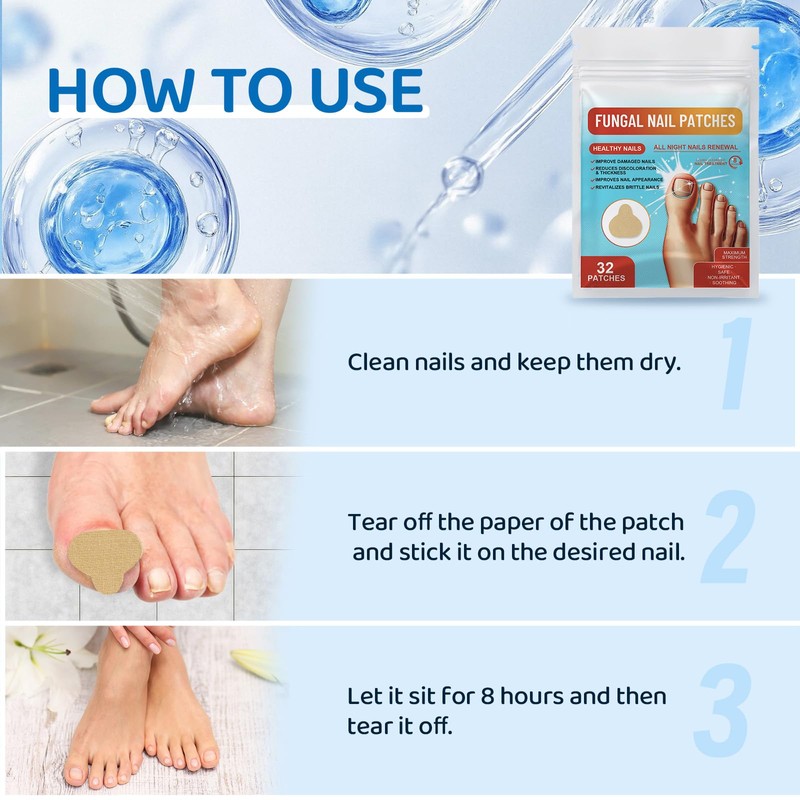 - How to Use: Clean and dry the affected area. Apply one patch to each problem toenail before bedtime. Press gently to secure. Remove the next morning and repeat daily for consistent results.